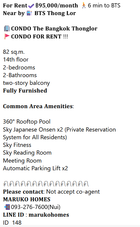 The Bangkok Thonglor BTS Thong Lor 2 Beds 2 Baths 82 sq. m. Fully Furnished by MARUKO HOMES Tel:0932767600