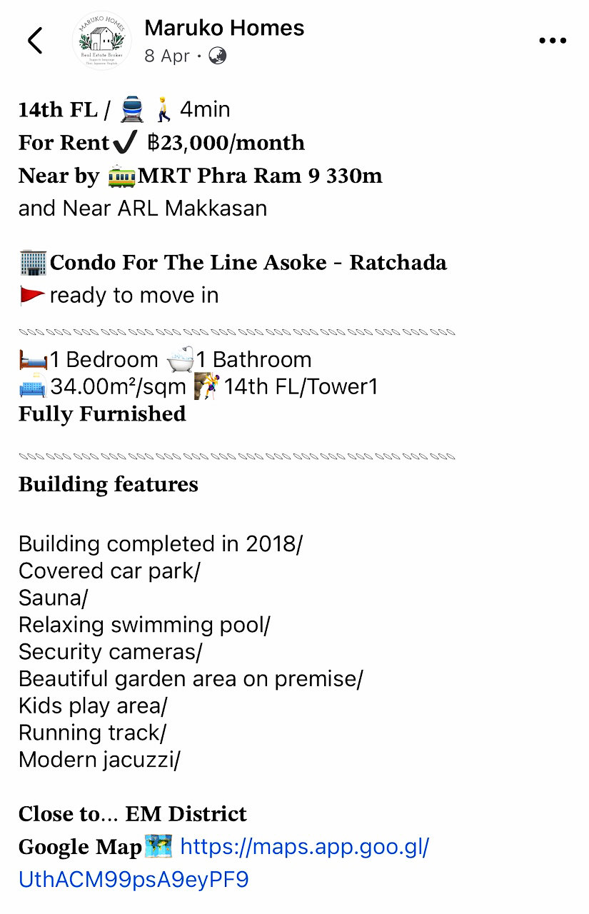 The Line Asoke near MRT Phra Ram 9 for rent 34 sqm. 23,000/month 1 bed 1 bathroom fully furnished by Marukohomes Tel:0932767600