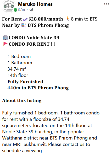 Noble State 39 near BTS Phrom Phong 1 Bed 1 Bath 34.74 m². Fully Furnished by MARUKO HOMES Tel:0932767600