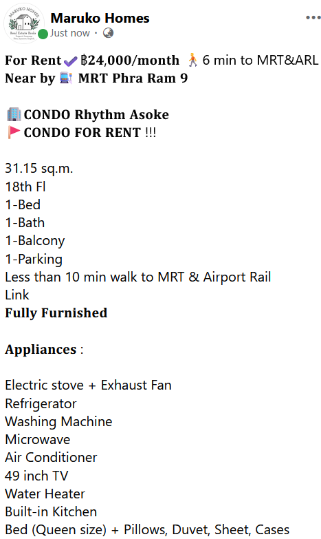Rhythm Asoke near MRT Phra Ram 9 1 Bed 1 Bath 31.15sq. m. Fully Furnished by MARUKO HOMES Tel:0932767600