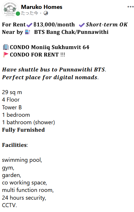 Moniiq Sukhumvit 64 BTS Bang Chak - Punnawithi 1 Bed 1 Bath1 29 sq. m . Fully Furnished MARUKO HOMES Tel:0932767600