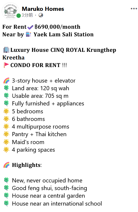 CINQ ROYAL Krungthep Kreetha Near Yaek Lam Sali Station 5 Beds 6 Baths 705 sq m. Fully Furnished MARUKO HOMES Tel:0932767600