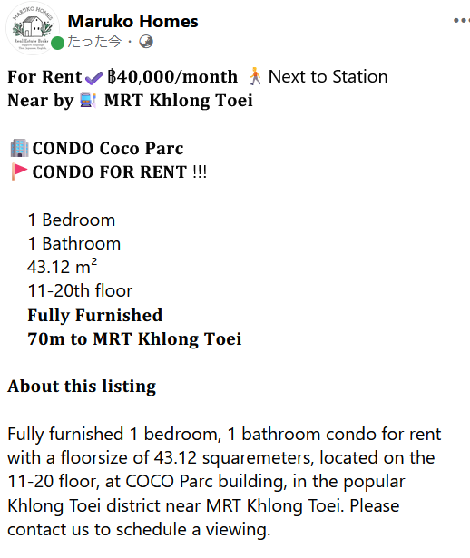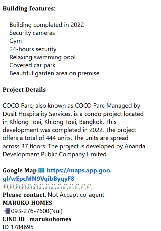 Coco Parc Near MRT Khlong Toei 1 Bed 1 Bath 43.12 m². Fully Furnished by MARUKO HOMES Tel:0932767600