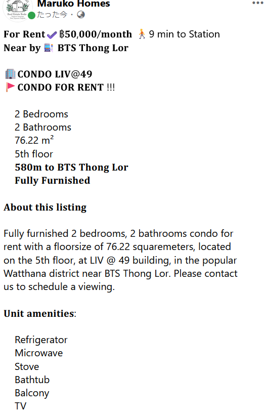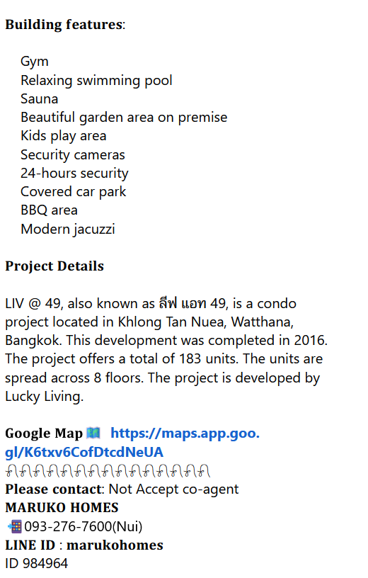 LIV @ 49 Near BTS Thong Lor 2 Bed 2 Bath 76 m². Fully Furnished by MARUKO HOMES Tel:0932767600