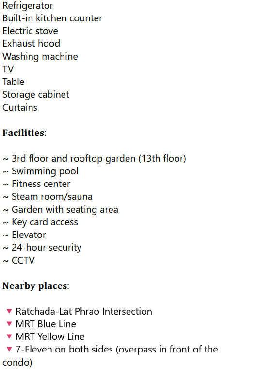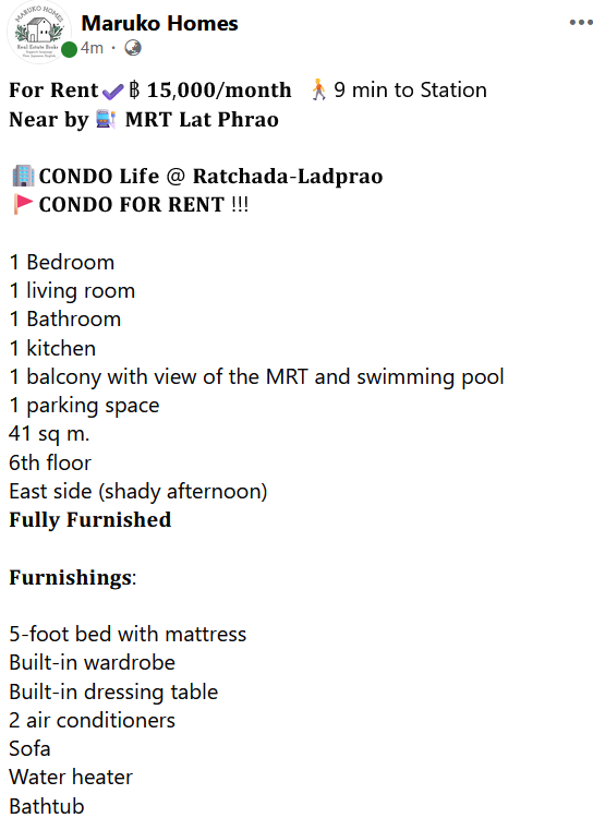 Life @ Ratchada-Ladprao MRT Lat Phrao 1 bed 1 Bath 41 sq m. Fully Furnished by MARUKO HOMES Tel:0932767600