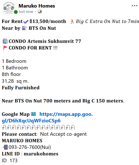 Artemis Sukhumvit 77 BTS On Nut 1 bed 1 Bath 31.28 sq m. Fully Furnished by MARUKO HOMES Tel:0932767600