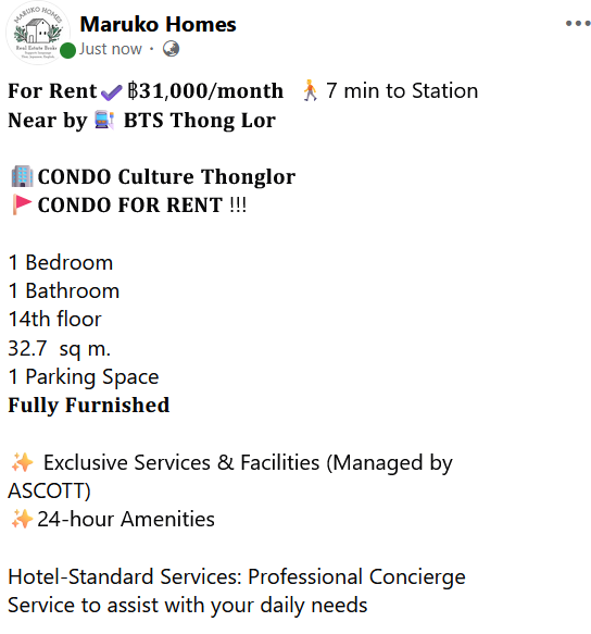 Culture Thonglor BTS Thong Lor 1 bed 1 Bath 32.7 sq m. Fully Furnished by MARUKO HOMES Tel:0932767600