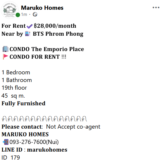The Emporio Place BTS Phrom Phong 1 bed 1 Bath 45 sq m. Fully Furnished by MARUKO HOMES Tel:0932767600