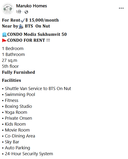 Modiz Sukhumvit 50 Near BTS On Nut 1 bed 1 Bath 27 sq m. Fully Furnished by MARUKO HOMES Tel:0932767600